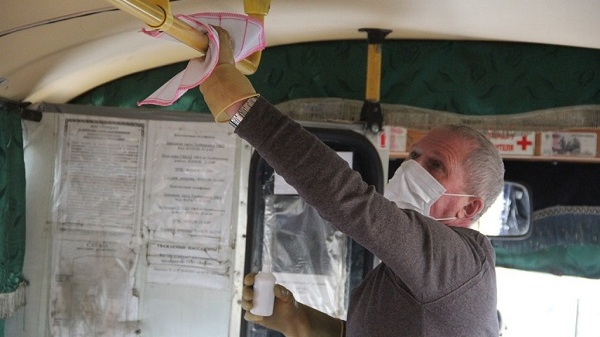 Предприятиями-перевозчиками обеспечено проведение всех необходимых санитарных мероприятий. На конечных остановках в салонах автобусов специальными средствами обрабатываются поручни, сиденья и пол.