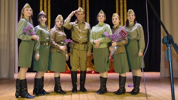На сцену к зрителям вышли Галя Четвертак (Урбаневич Анастасия), Женя Комелькова (Мельниченко Анна), Лиза Бричкина (Федрец Людмила), Рита Осянина (Осетрова Анна), Соня Гурвич (Щербакова Наталья) и старшина Федот Васков (Щербаков Валентин). Главные герои рассказали зрителям о немеркнущем подвиге нашего народа, о вечно живых воинах бессмертного полка, о тех, кто на фронте и в тылу приближали как мог Великий День Победы!